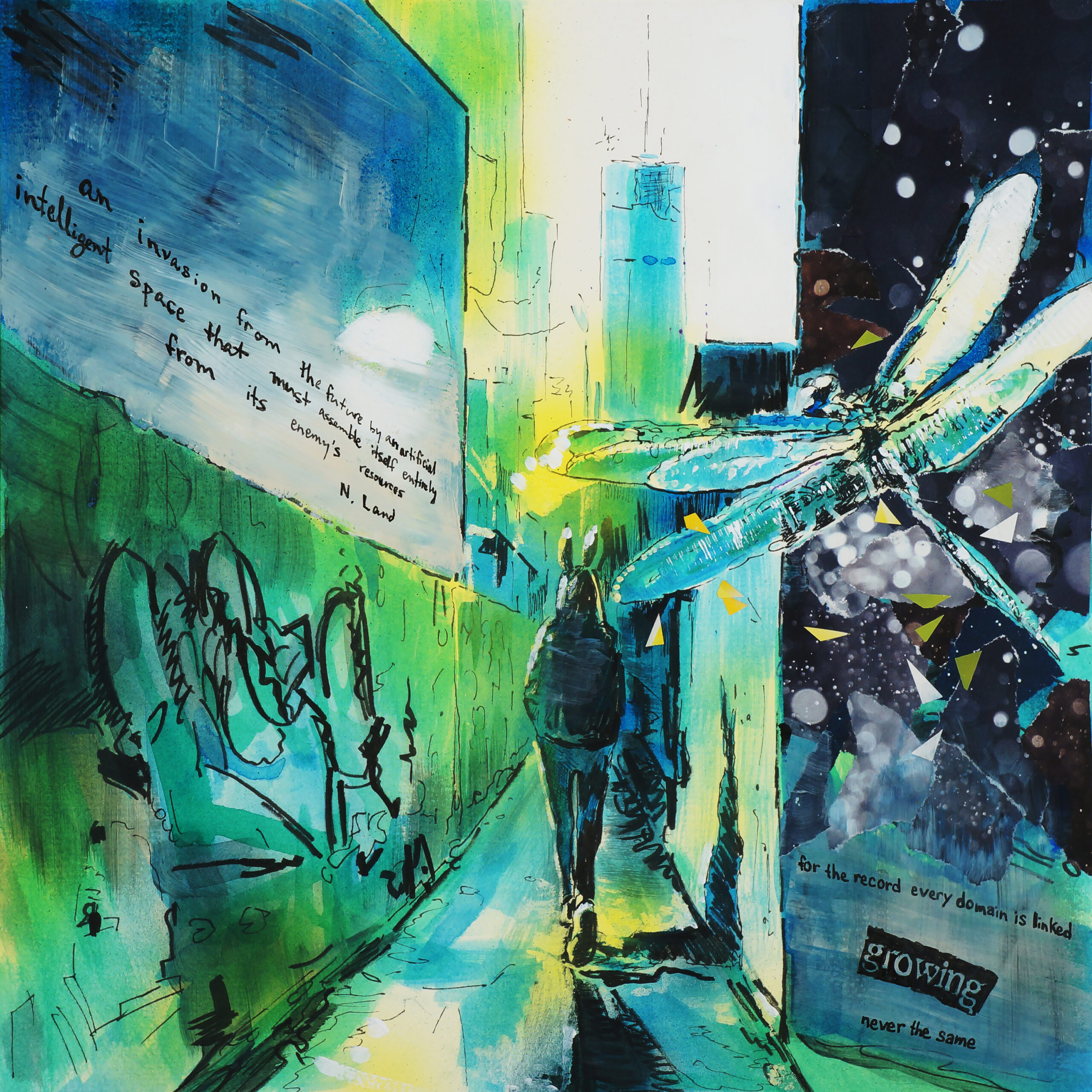 mixed media and paper on board