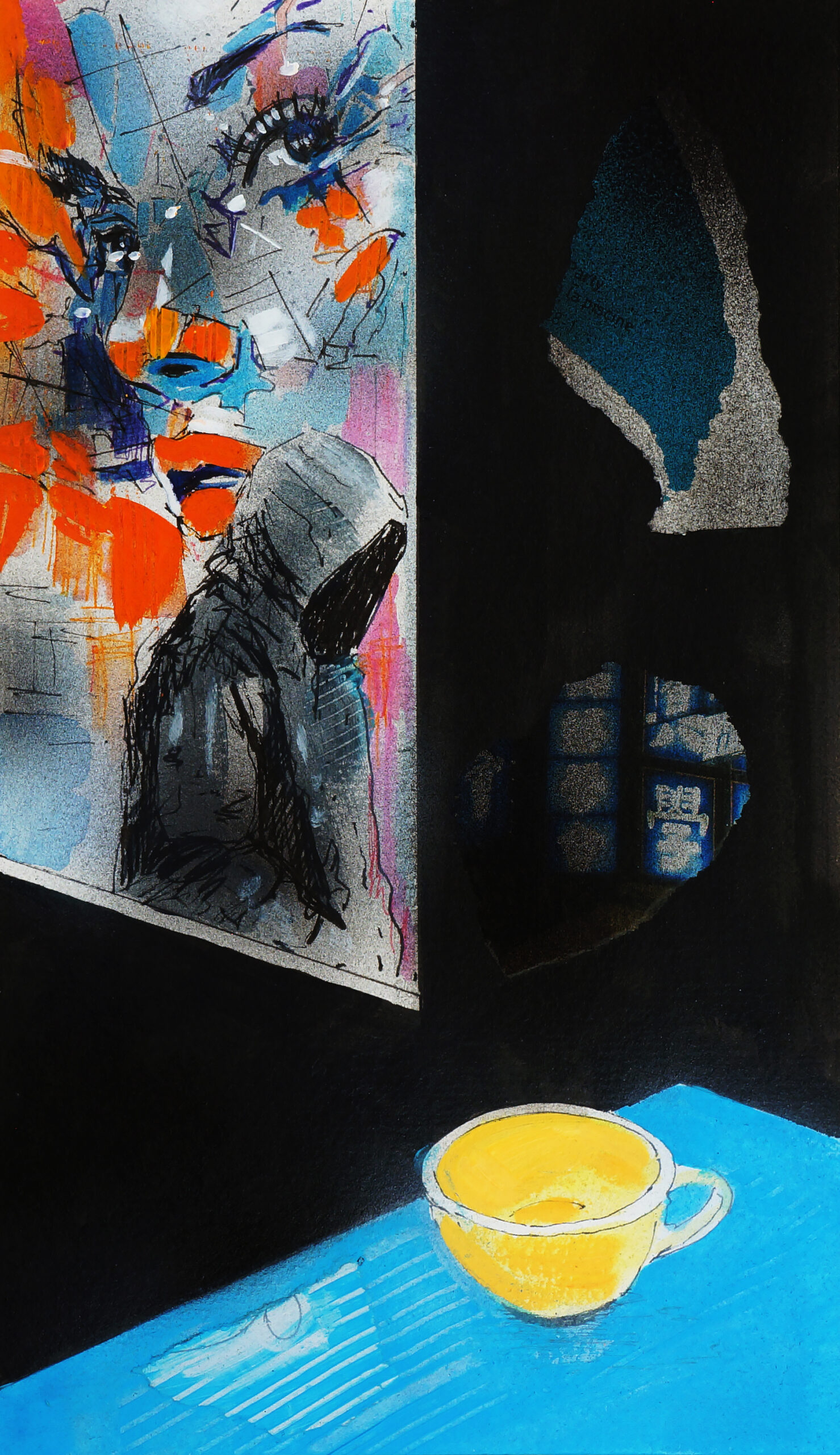 mixed media and paper on board