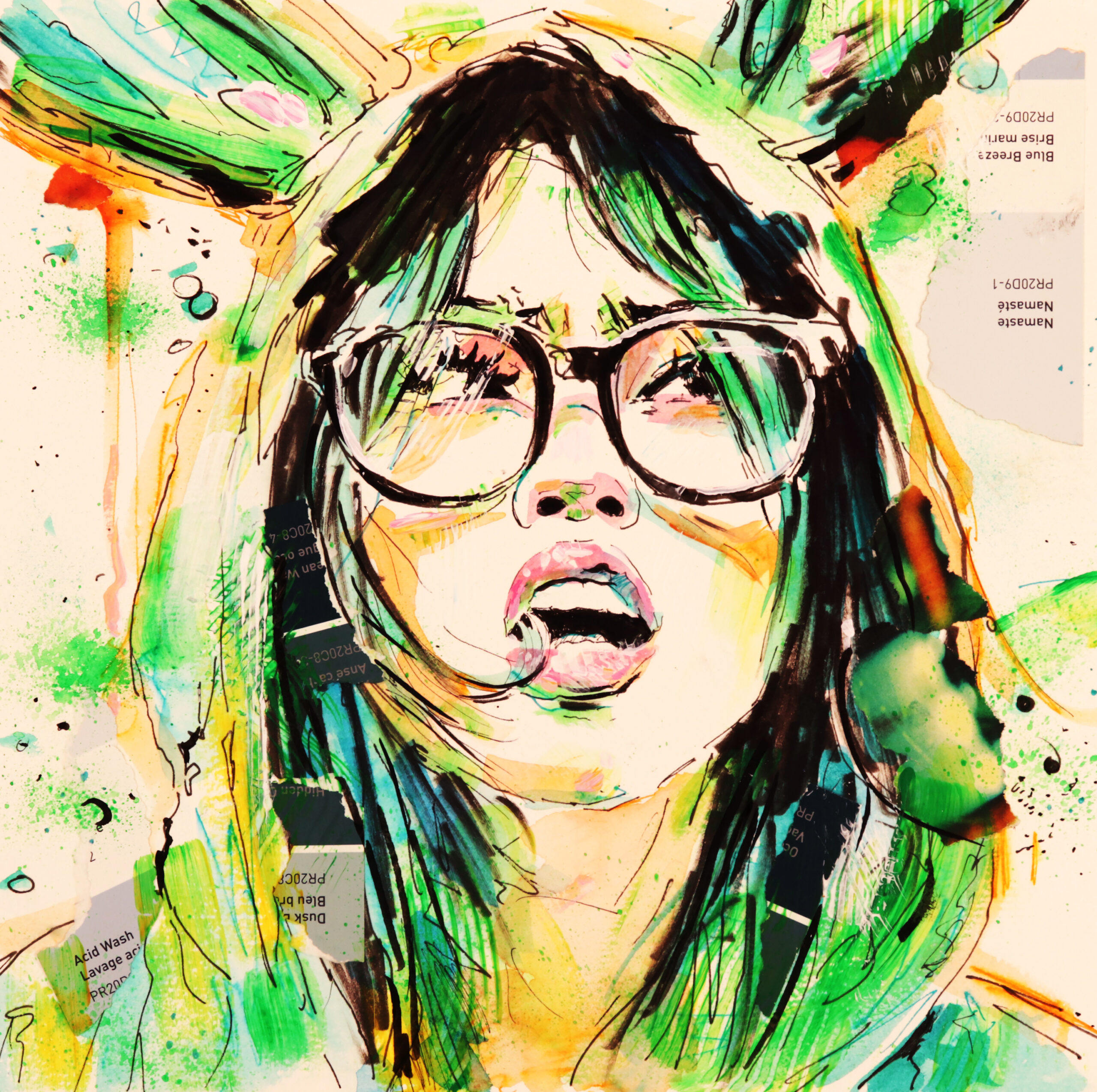 mixed media and paper on board
