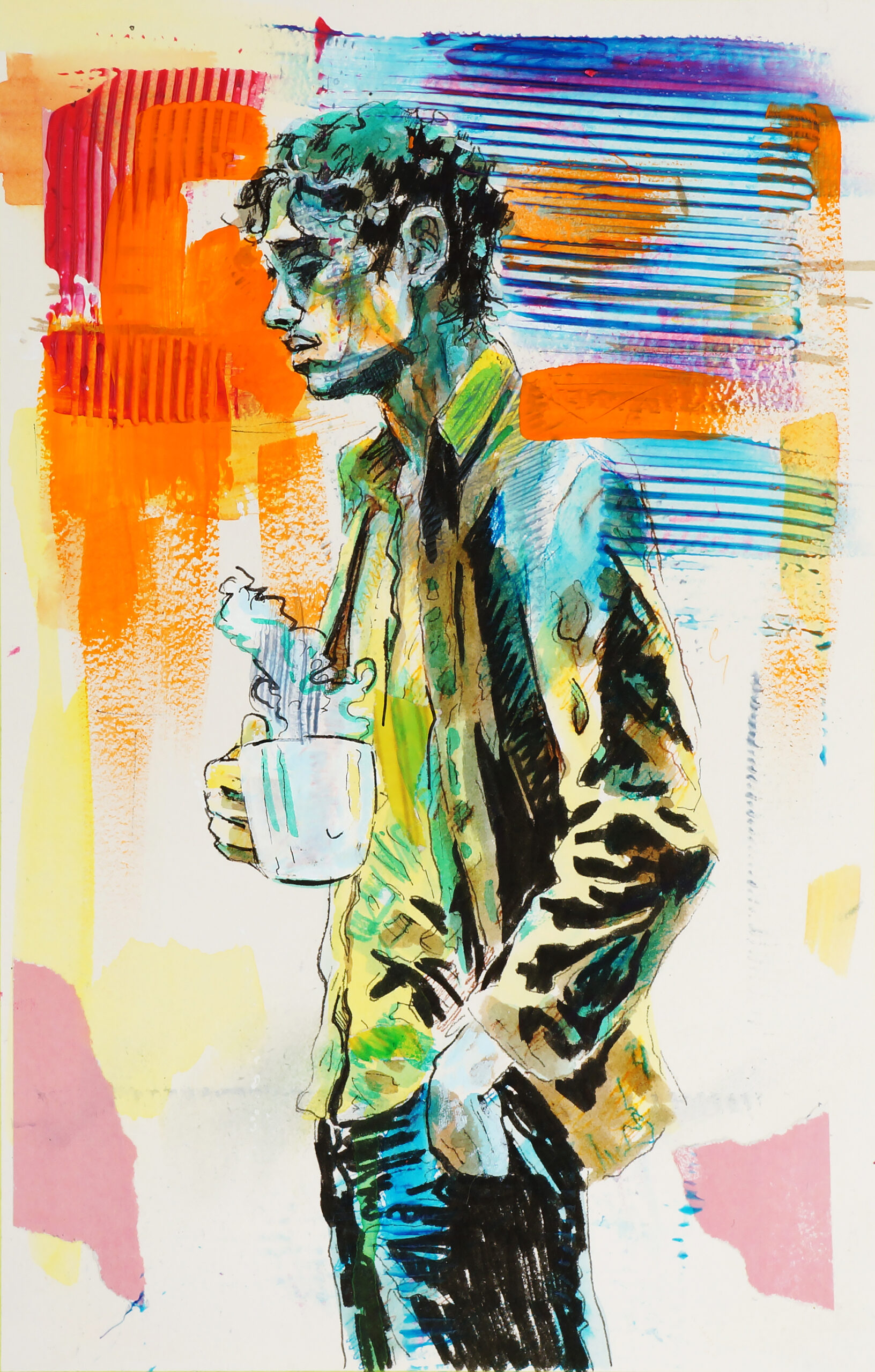 mixed media and paper on board