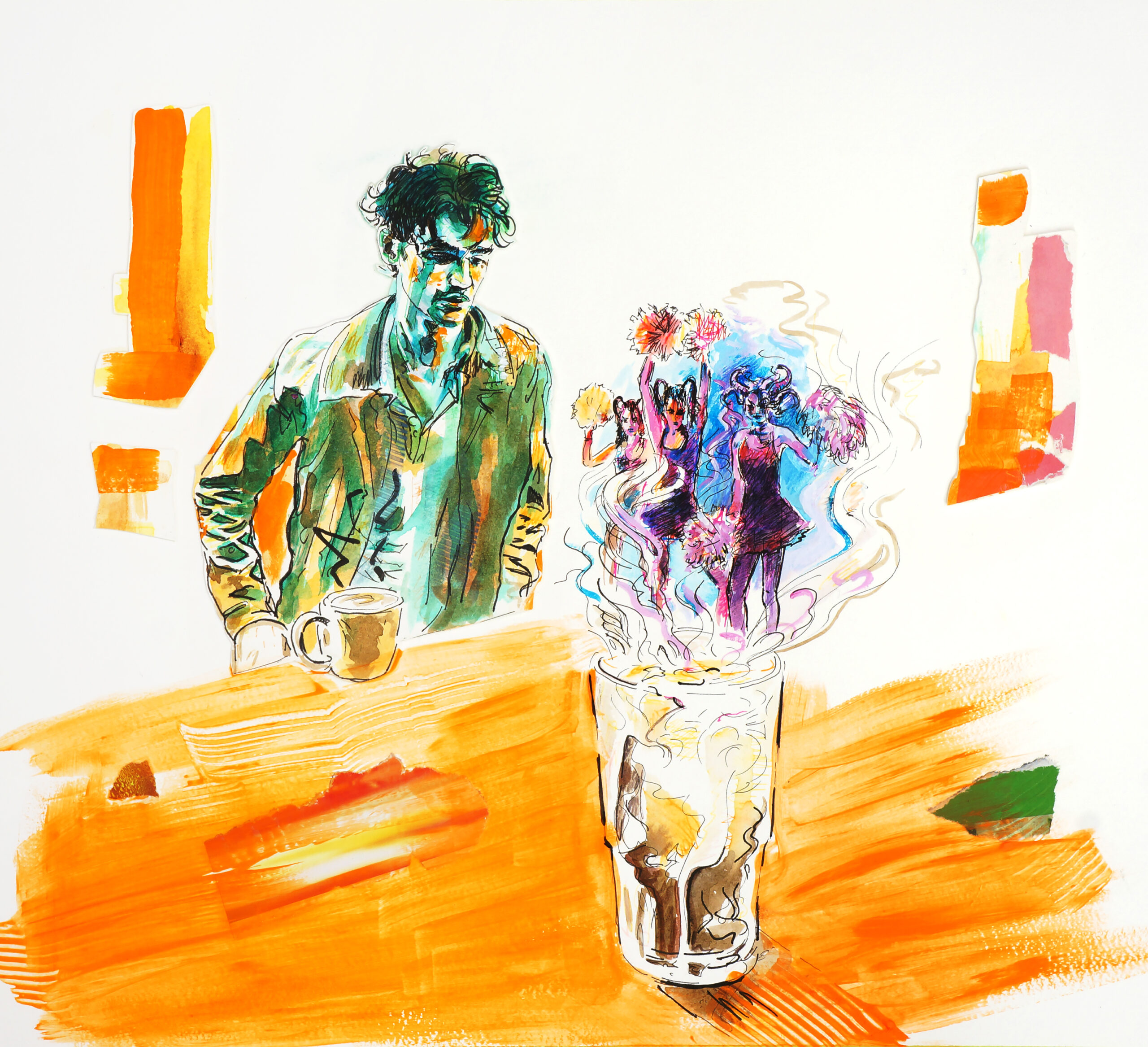 mixed media and paper on board